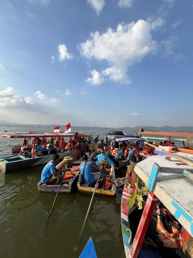 Dokumentasi Rombongan Pascasarjana UNS ketika akan memulai proses Larung Sedekah Rawa pada Festival Rawa Pening 2025.